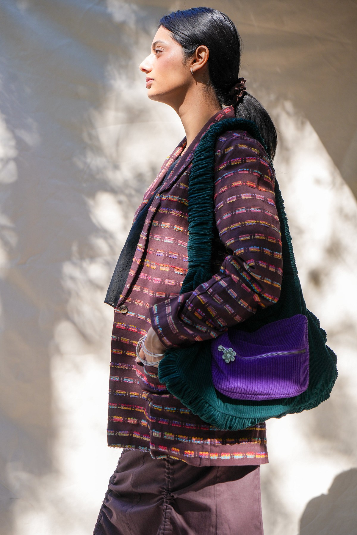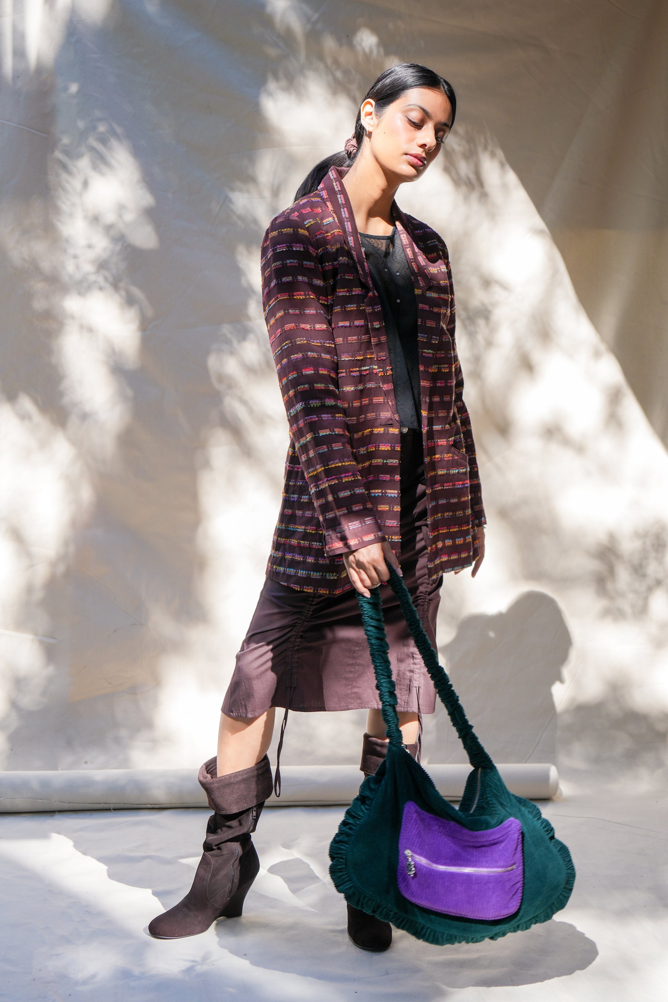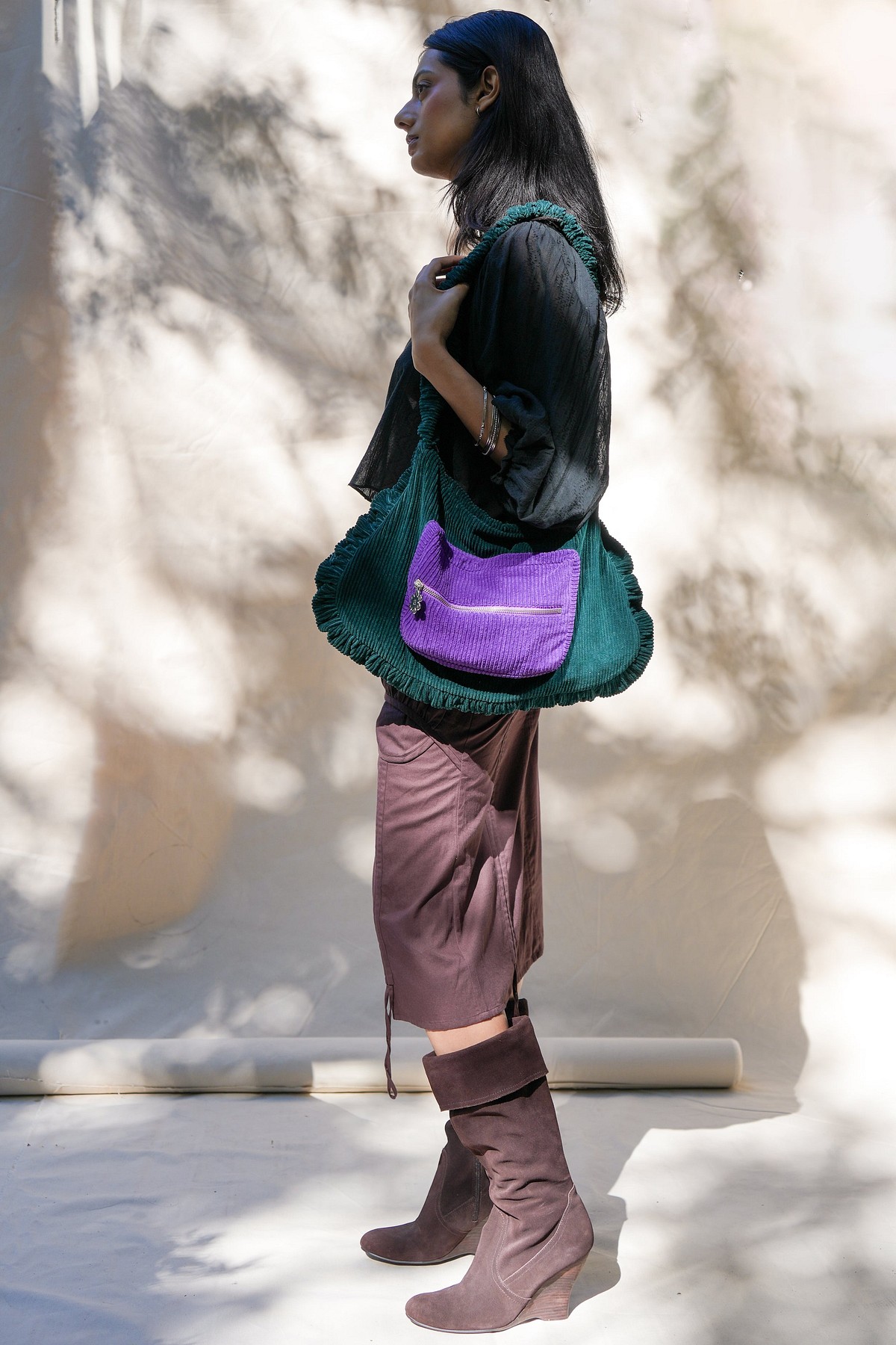 Tested for years across NYC and beyond by Sheena on her travels, this cult-favorite Scrunchie Shoulder Bag is finally available in a limited run. Made from ultra-soft corduroy using 100% regeneratively-grown organic cotton, with twill lining, interior/exterior pockets, and silver abacaxi monogram zipper pulls.